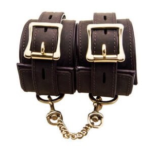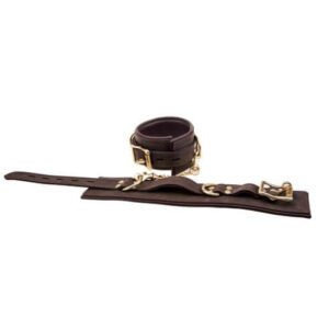 These ankle restraints are designed for comfort and durability. The nubuck leather ensures a soft feel against the skin, while the detachable trigger hook chain and D-rings offer versatility. Ideal for long sessions and secure play.