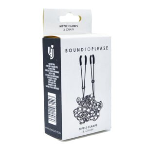 Introduce thrilling sensations to your play with the Bound to Please Nipple Clamps & Chain. Perfect for beginners, these adjustable clamps allow you to customize the pressure for gentle or firm stimulation. The rubber tips ensure maximum comfort, while the nickel-free metal construction provides safety and durability. Linked by a lightweight chain, these clamps add an exciting visual and sensory element to your experience, making them an excellent addition to any pleasure session.