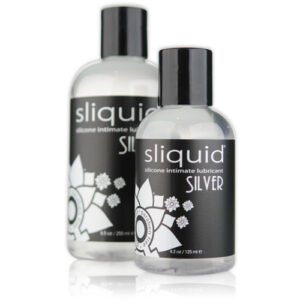 Sliquid Naturals Silver Silicone Lubricant is an ultra-concentrated, long-lasting silicone lubricant that offers a superior glide for both intimate play and sensual massage. This silicone formula is waterproof, ensuring that it remains slick and smooth even in wet environments such as the shower or bath. Its smooth, silky texture enhances the natural feeling of touch and is designed to last longer than water-based lubes, making it ideal for prolonged sessions. Free from glycerin, parabens, and harsh chemicals, it is safe for sensitive skin, though be aware that it may stain fabrics. This luxurious lubricant is perfect for anyone looking for extended pleasure and ease of use.